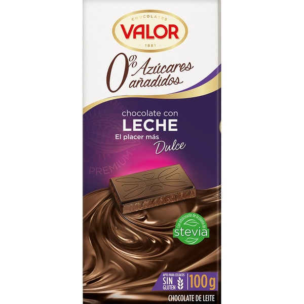 CHOCOLATE VALOR LECHE 0% AZUCAR AÑADIDO 100 g.