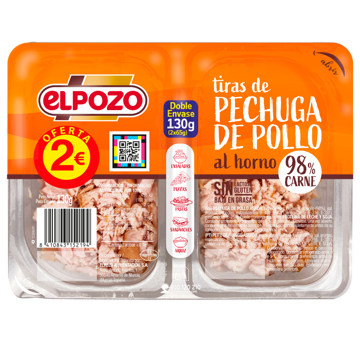 TIRAS PECHUGA POLLO ELPOZO 2x65g.