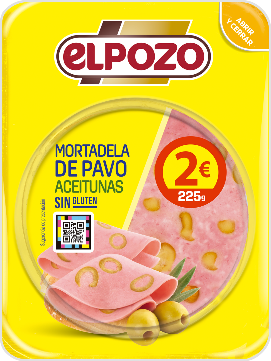 MORTADELA DE PAVO CON ACEITUNAS ELPOZO 225g. PVP2€
