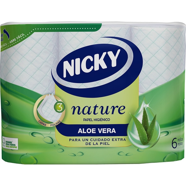 PAPEL HIENICO NICKY NATURE 6 ROLLOS (ALOE VERA)