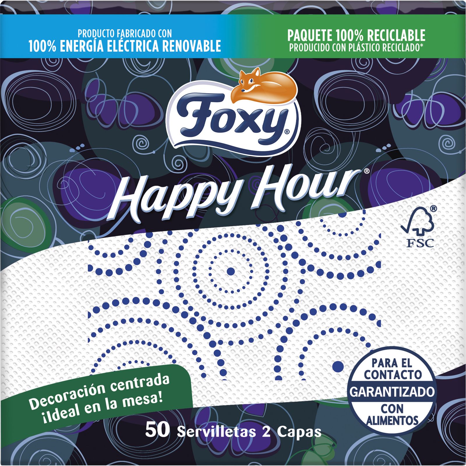 SERVILLETAS FOXY HAPPY HOUR 2 CAPAS 30x30 50ud.