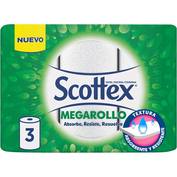 ROLLO COCINA SCOTTEX MEGA 2 CAPAS 3 ROLLOS