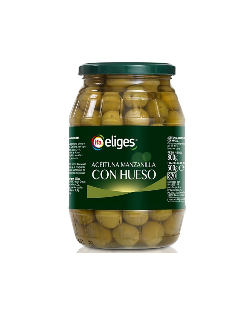 ACEITUNAS VERDE HUESO BARRIL IFA ELIGES 500g.