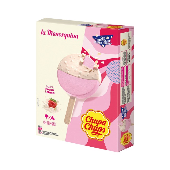 HELADO CHUPA CHUPS NATA Y FRESA MENORQUINA 4x60g.