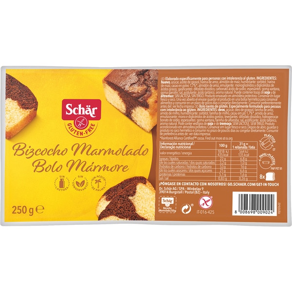 BIZCOCHO SCHAR MARBLE CAKE S/GLUTEN 250g.