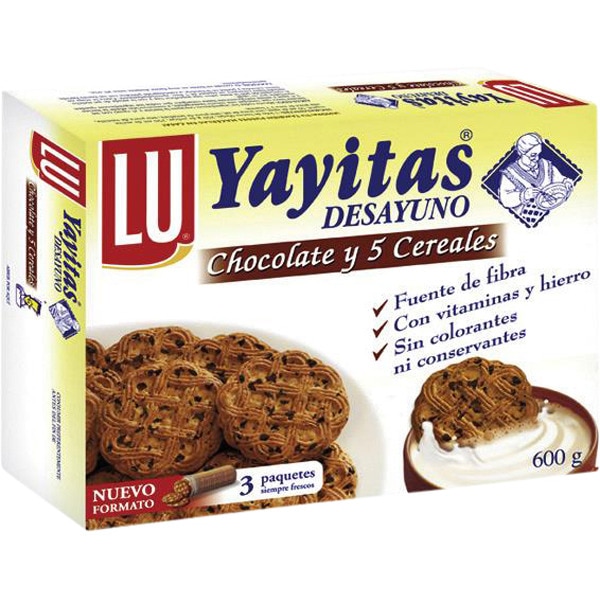 GALLETAS YAYITAS CHOCOLATE Y 5 CEREALES 600g.