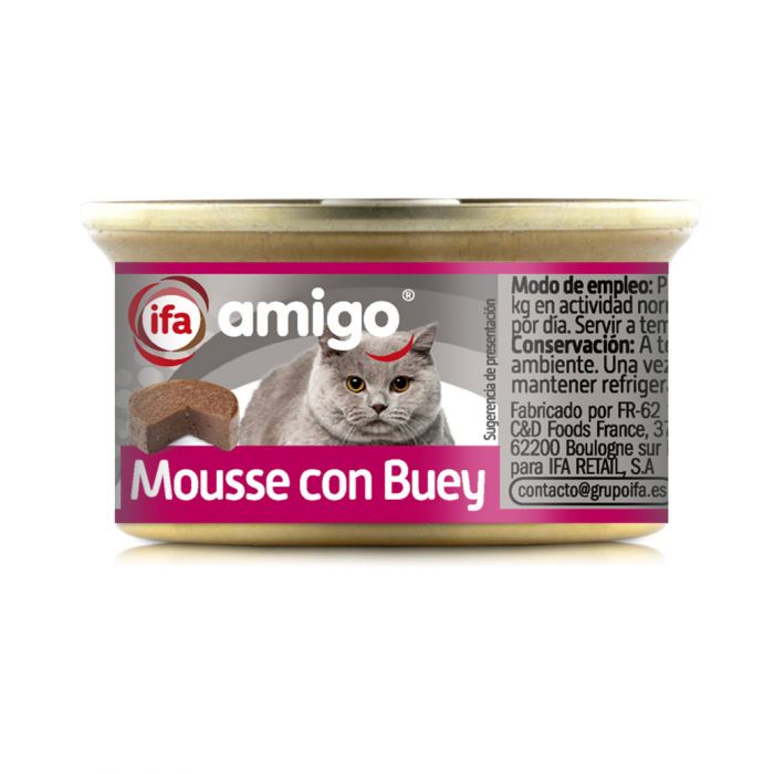 COMIDA GATO MOUSSE CON BUEY GATO IFA AMIGO 85 g.