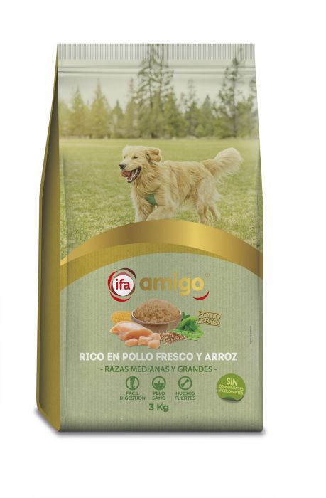 COMIDA PERRO MEDIANO GRANDE POLLO FRESCO Y ARROZ IFA AMIGO 3Kg.