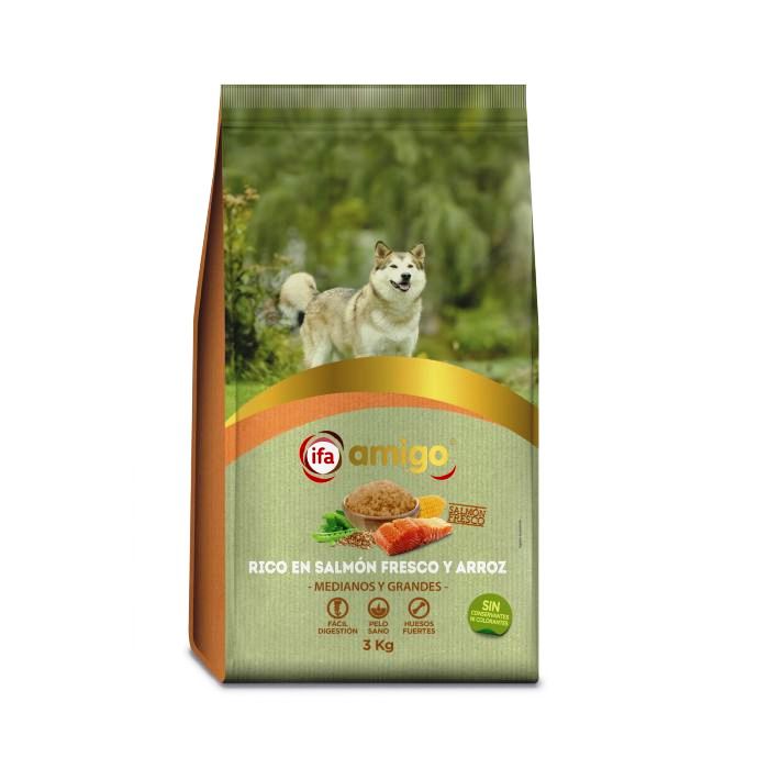 COMIDA PERRO MEDIANO GRANDE SALMON FRESCO Y ARROZ IFA AMIGO 3Kg.
