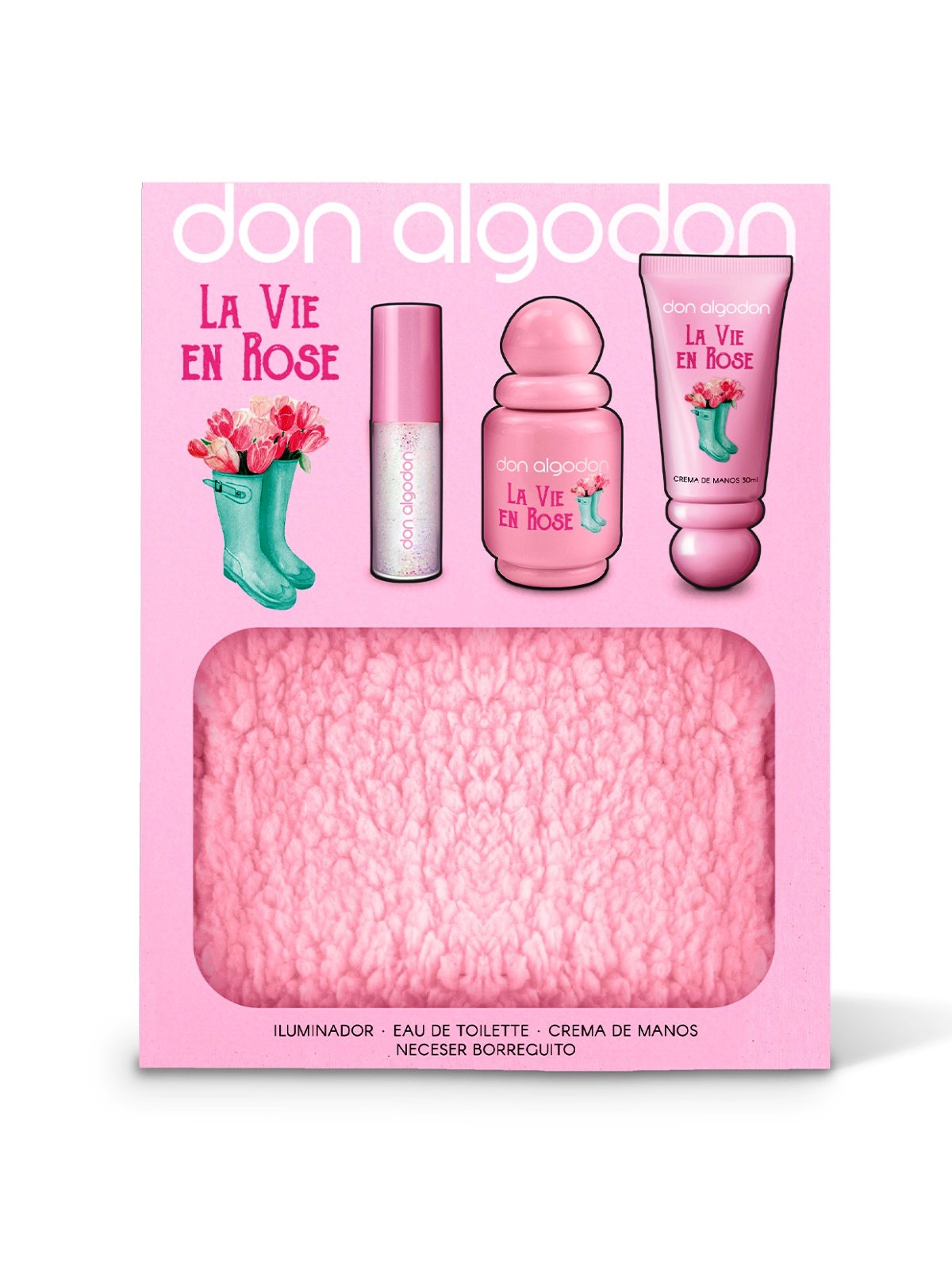 DON ALGODON SET MUJER LA VIE EN ROSE (COLONIA+CREMA+ILUMINADOR+NECESER)