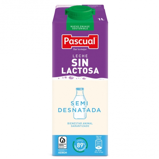 LECHE SEMIDESNATADA SIN LACTOSA PASCUAL 1 L.